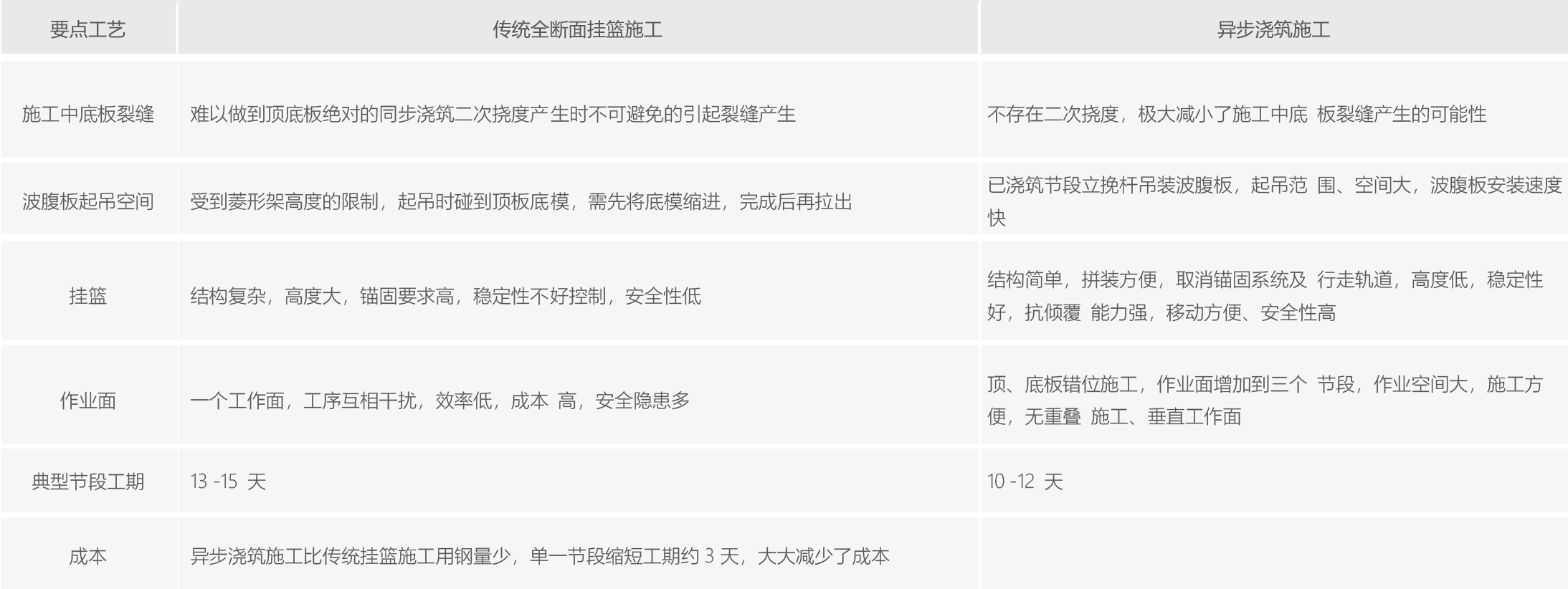 異步掛籃工藝對(duì)比